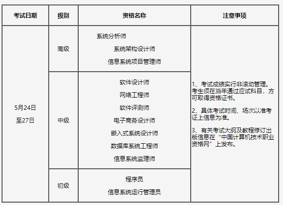5月19日开放准考证打印功能,报考人员登录全国计算机技术与软件专业技术资格(水平)考试网,使用A4纸自行打印。报考人员须持本人准考证和有效居民身份证参加考试。