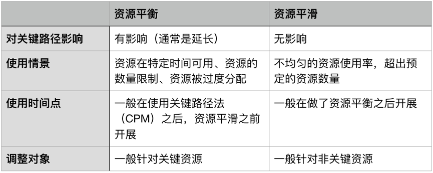 综上所述我们总结一下资源平衡与资源平滑的区别,如下表所示:
