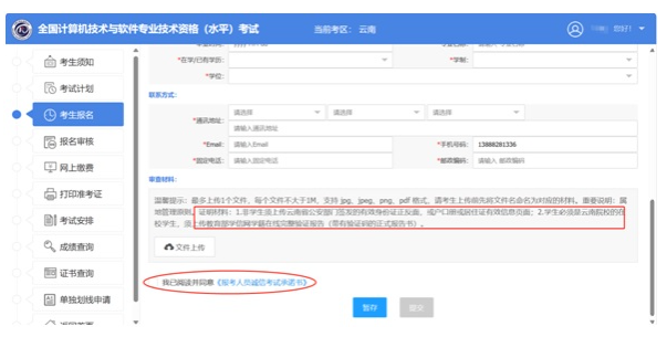 3、按要求提交属地证明材料,阅读承诺书并勾选已读,方可提交报名信息,等待审核: