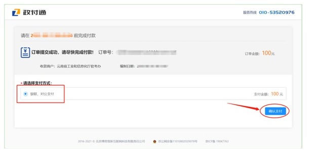 2、在支付界面,选择支付方式,点击“确认支付”: