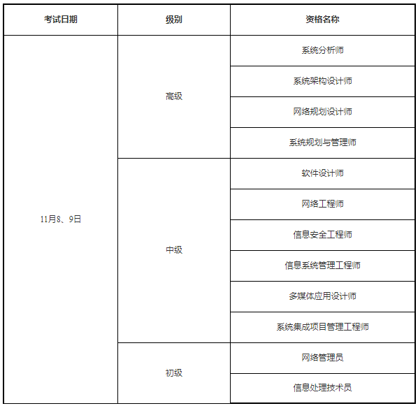 级别、资格安排详见附件,具体考试批次和时间安排以准考证为准。